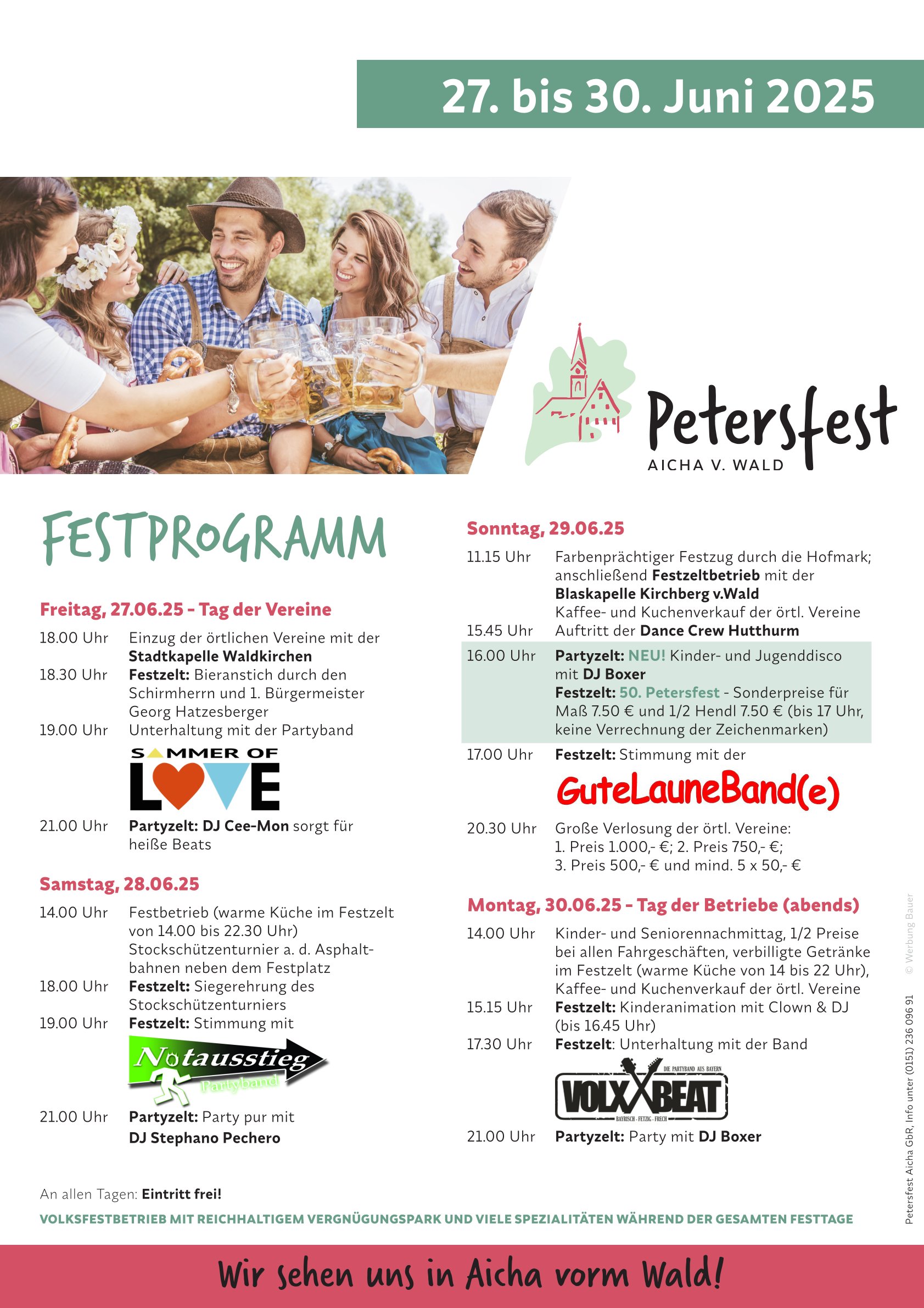 Von 27. bis 30. Juni 2025 lädt das beliebte Volksfest wieder zu Festzeltbetrieb, regionaler Küche, Party- und Blasmusik, Fahrgeschäften und einem bunten Programm für die ganze Familie ein.
